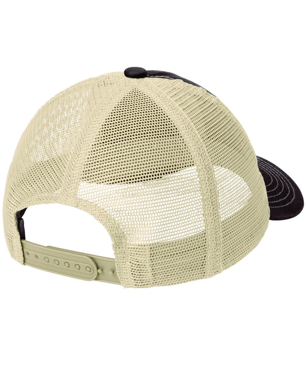 Fabric: 100% cotton twill front panels, 100% polyester mesh mid and back panels