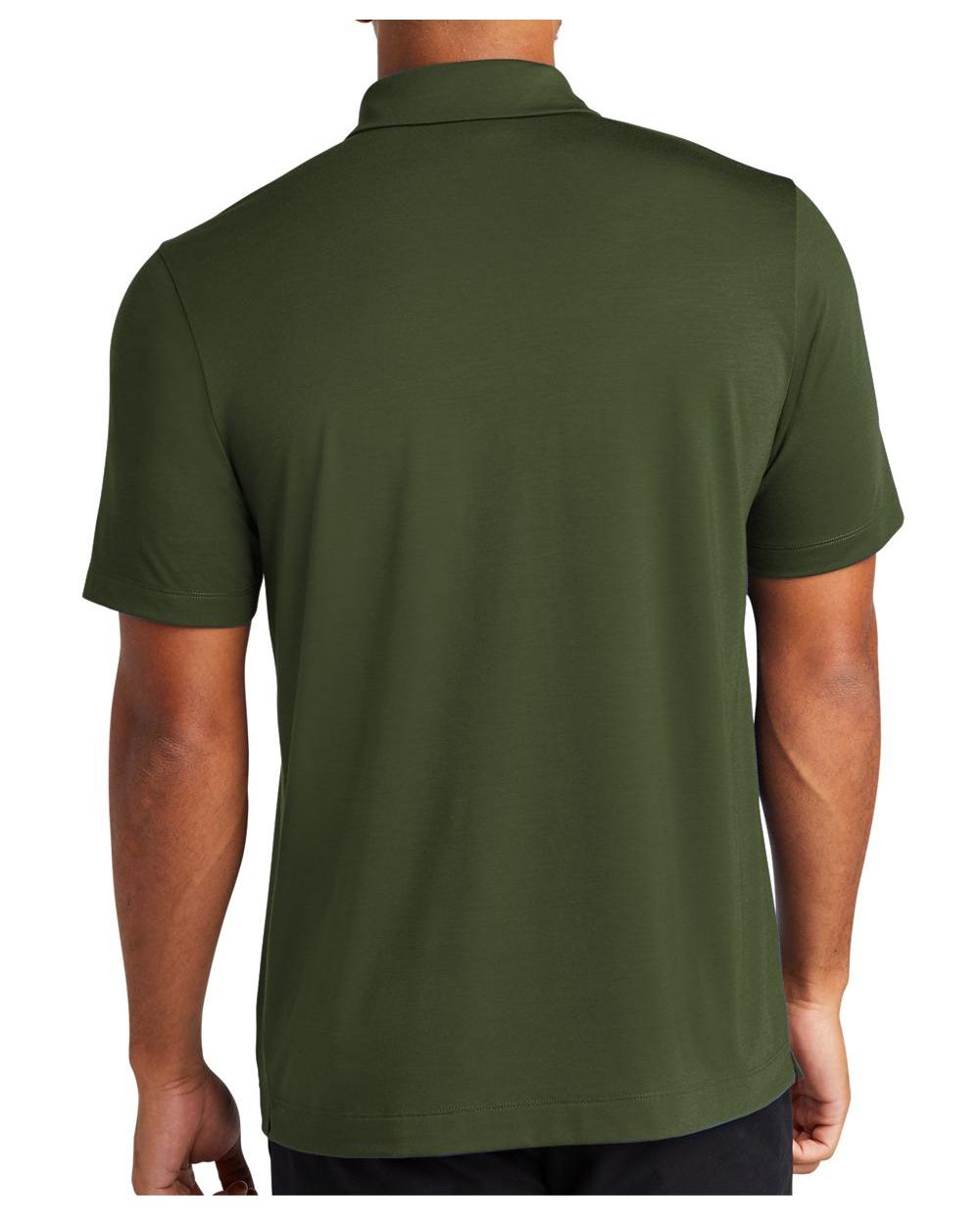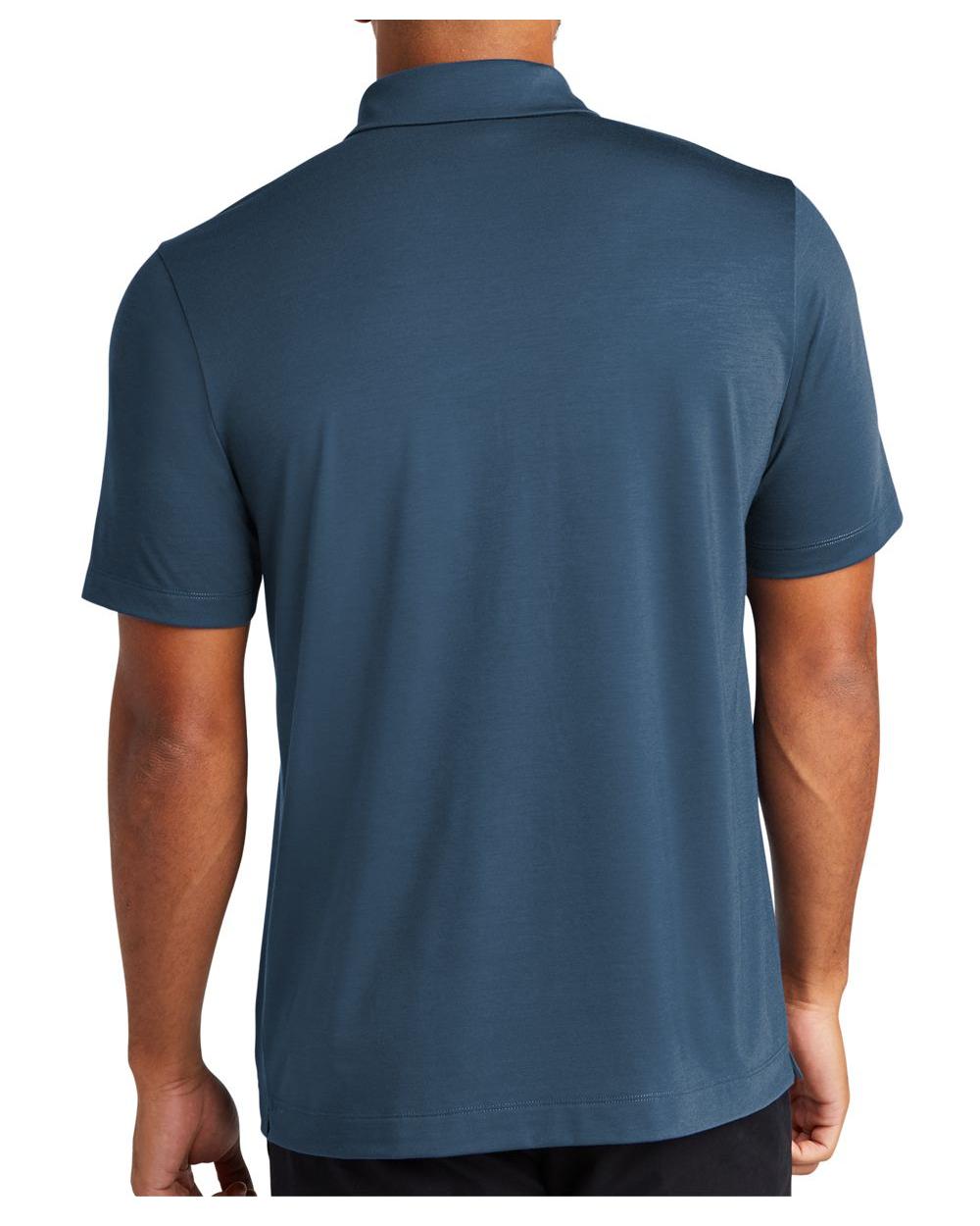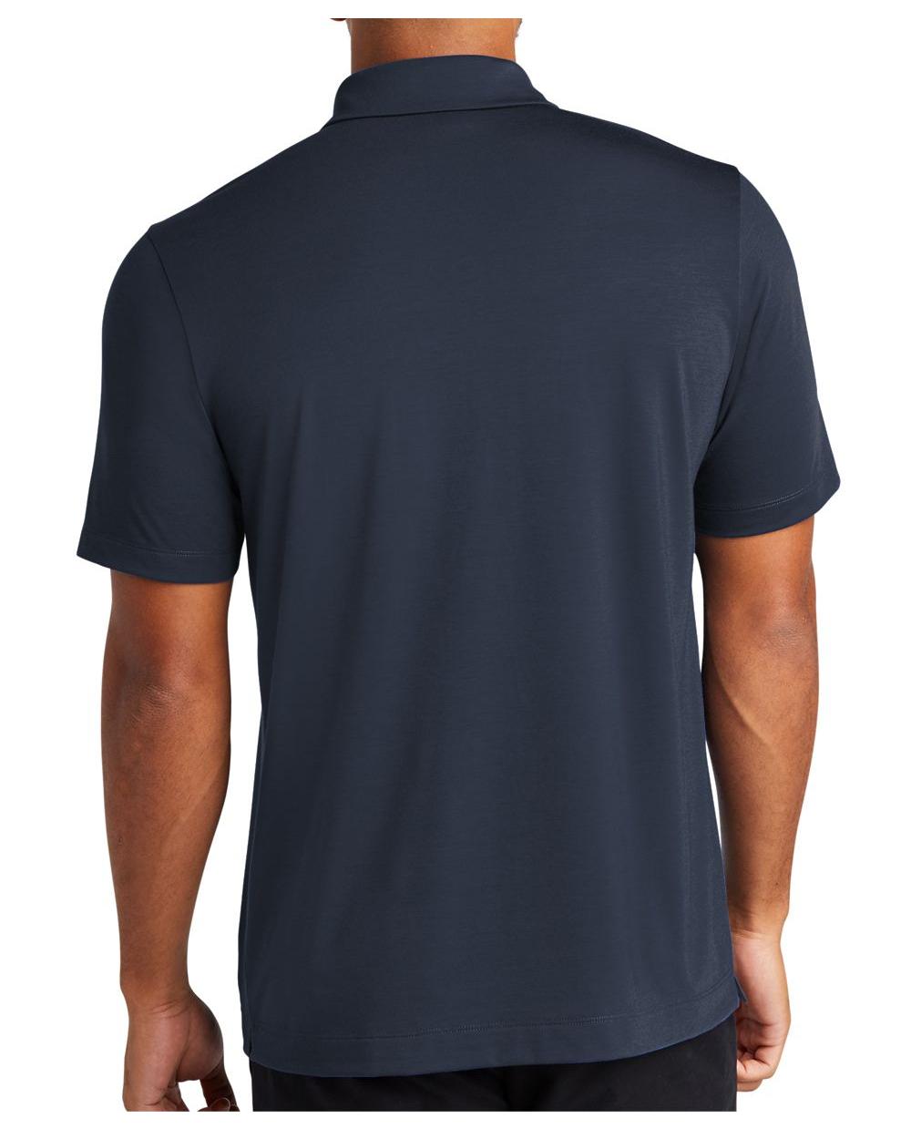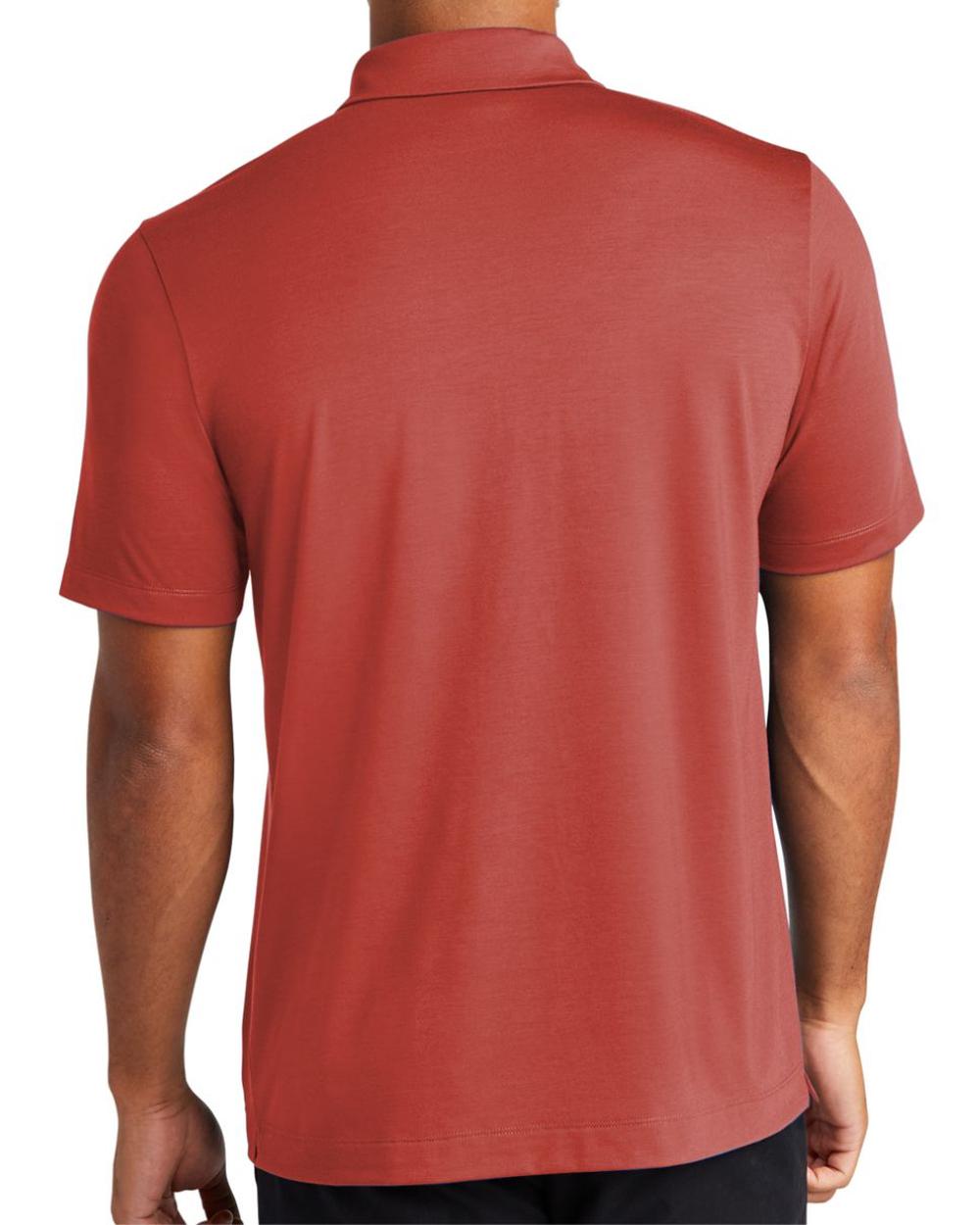 For a more style-forward polo, everyday pique knit is replaced with a soft jersey blend for a subtle drape and a smooth hand. Moisture-wicking and self-turned cuffs and hems lend cool vibes, all around. Fabric+Weight