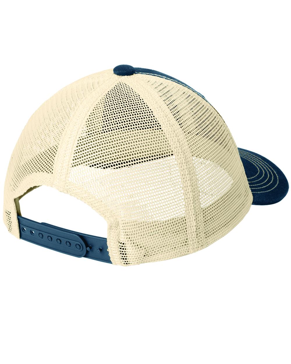 Fabric: 100% cotton twill front panels, 100% polyester mesh mid and back panels