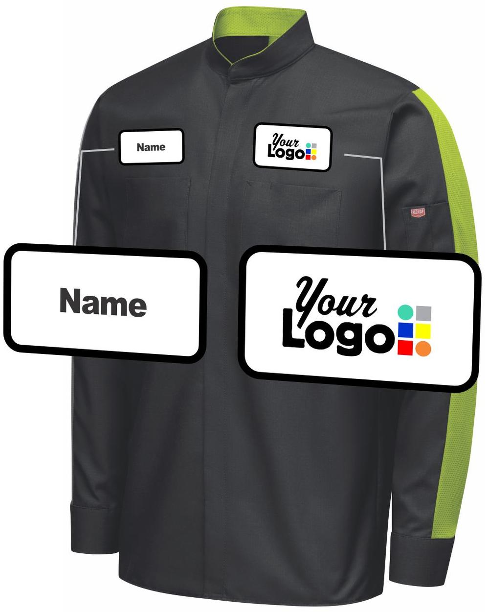 - Comes with a Custom Logo on left chest and a Personal Name on right chest, the application can be direct Embroidery or Embroidery on Patches (customers choice), 6 Minimum, No Setup, 8-12 Days Turnaround Time.