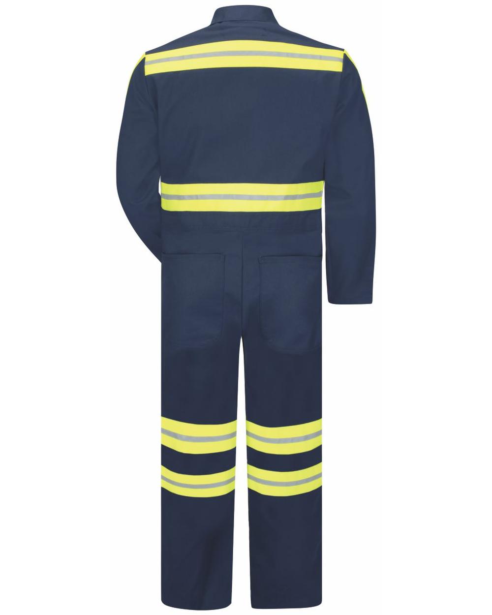 The enhanced visibility Men's Twill Action Back Coverall gives you room to work with enough range of motion to squat, jump, and bend on the job. This coverall is oversized for a roomy fit and can even be worn over clothes. Backside pleats offer additional room across the back for easy movement and range of motion. When worn over clothes, this coverall’s side vents allow quick access to your pockets and tool belt, while increasing visibility on the job site. This product does not comply with ANSI/ISEA 107-2015.