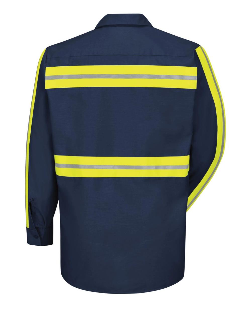 Sometimes you need to stand out more than your work. Our Enhanced Visibility Industrial Work Shirt comes in a professional grey with yellow/silver/yellow reflective striping to make sure you stand out from your surroundings. The shirt also comes with a two-piece, lined collar with sewn-in stays, a button-front closure, and two button-thru, hex-style pockets to complete your clean cut and practically look.