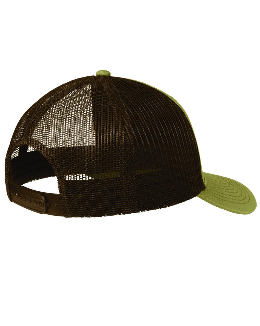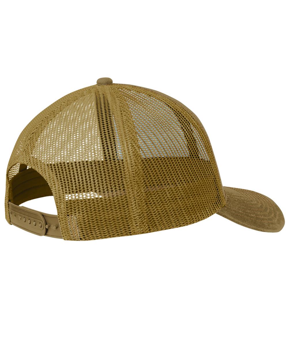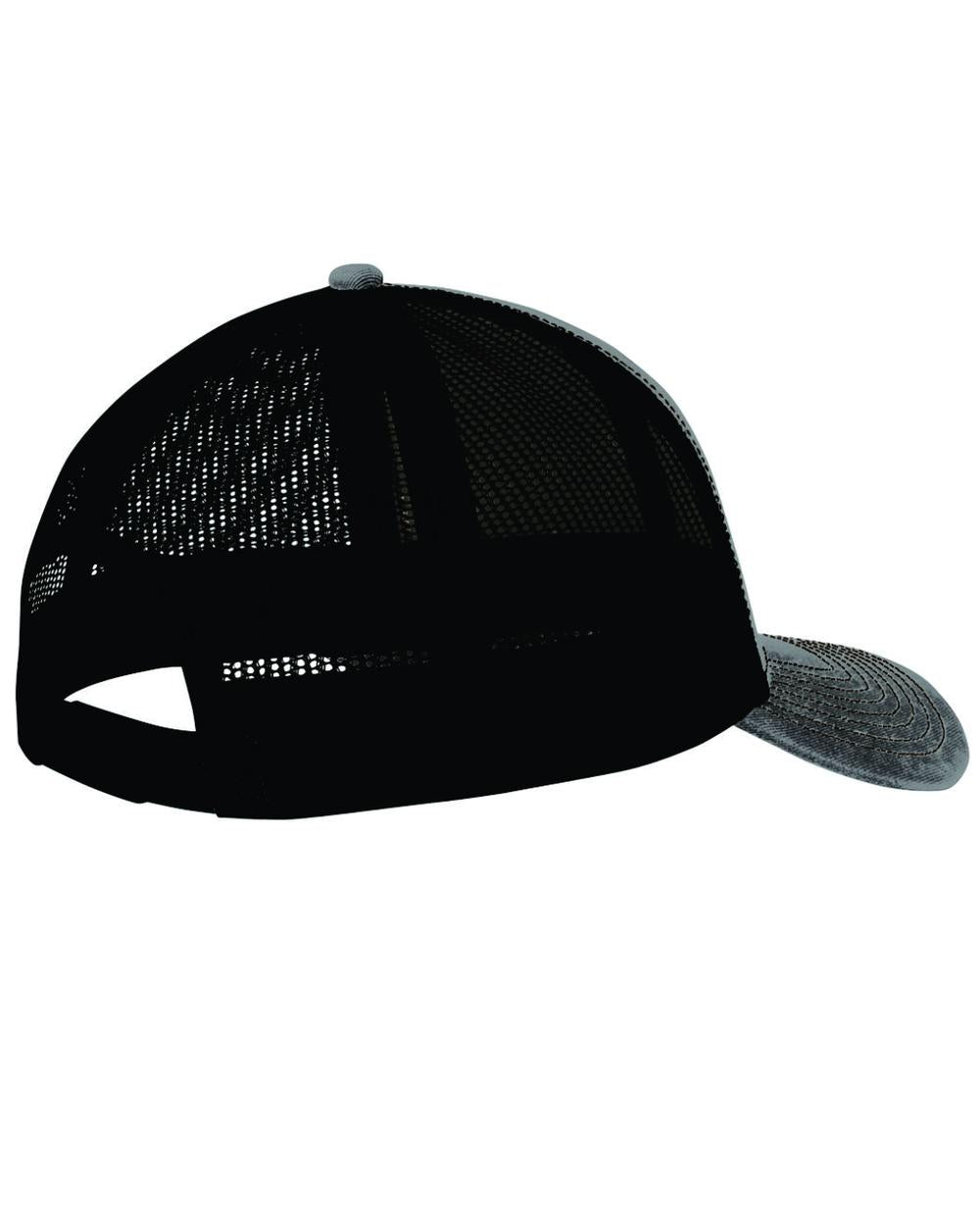 - Fabric: 100% cotton twill front panels and bill (Solids) 65/35 polyester/cotton twill front panels and bill (Heathers) 100% polyester mesh mid and back panels