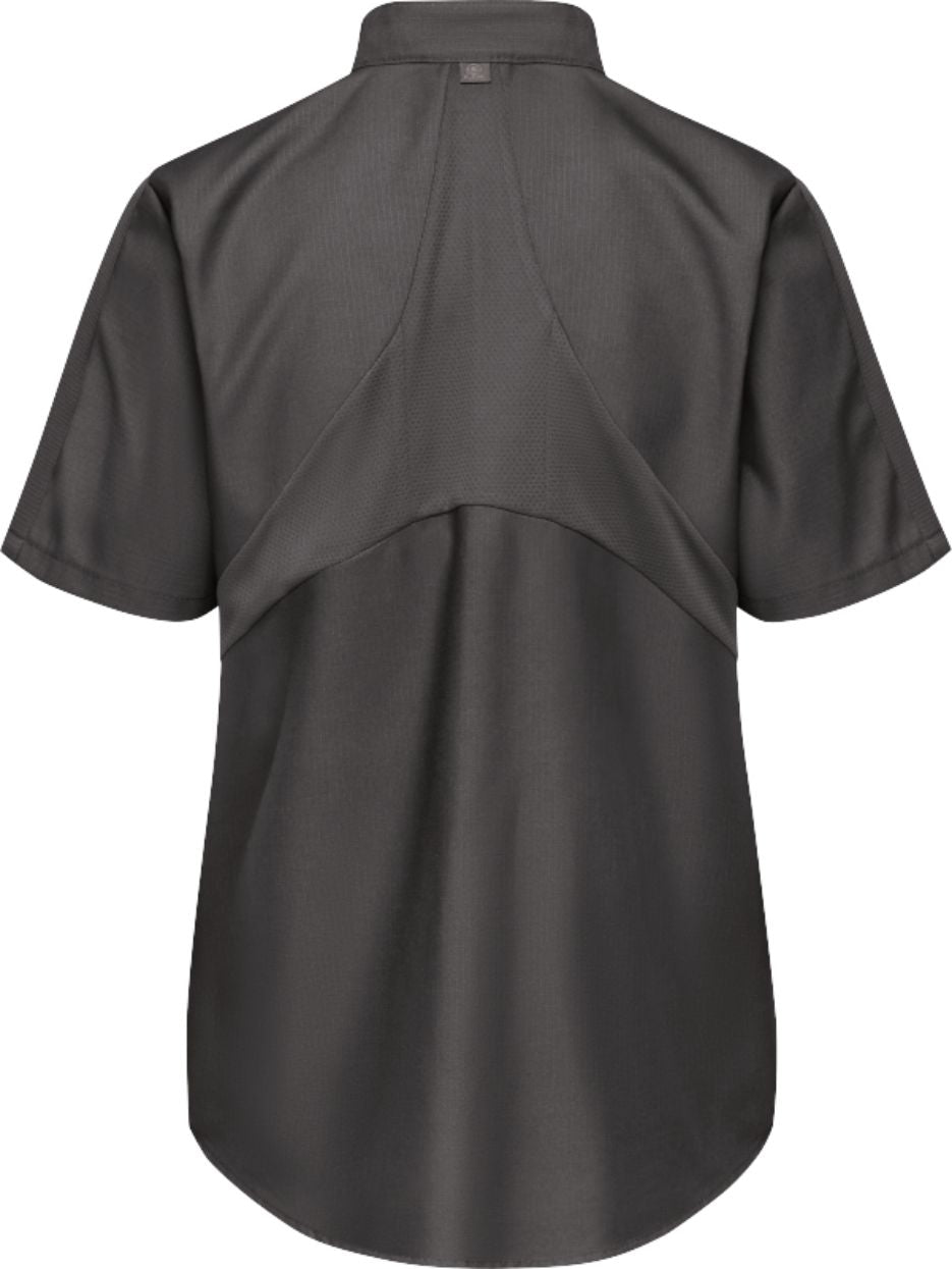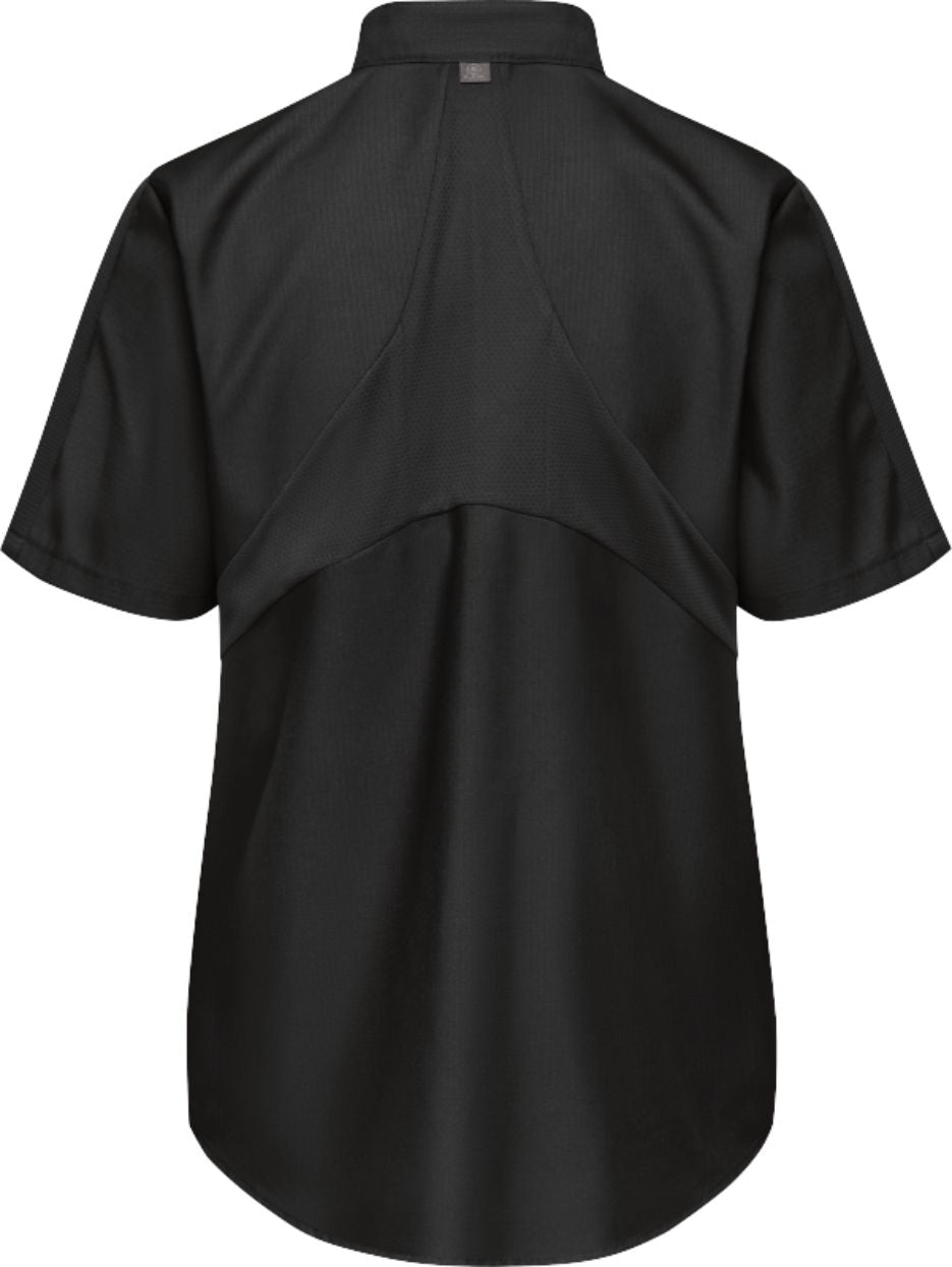 The back mesh flex panel and underarm gussets enhance appearance and improve mobility and breathability. Ripstop is lightweight but ultra-durable and offers superior color retention, plus soil release while wicking sweat away from the body during sweaty shifts. Covered snaps keep paint jobs protected and offer a professional appearance.