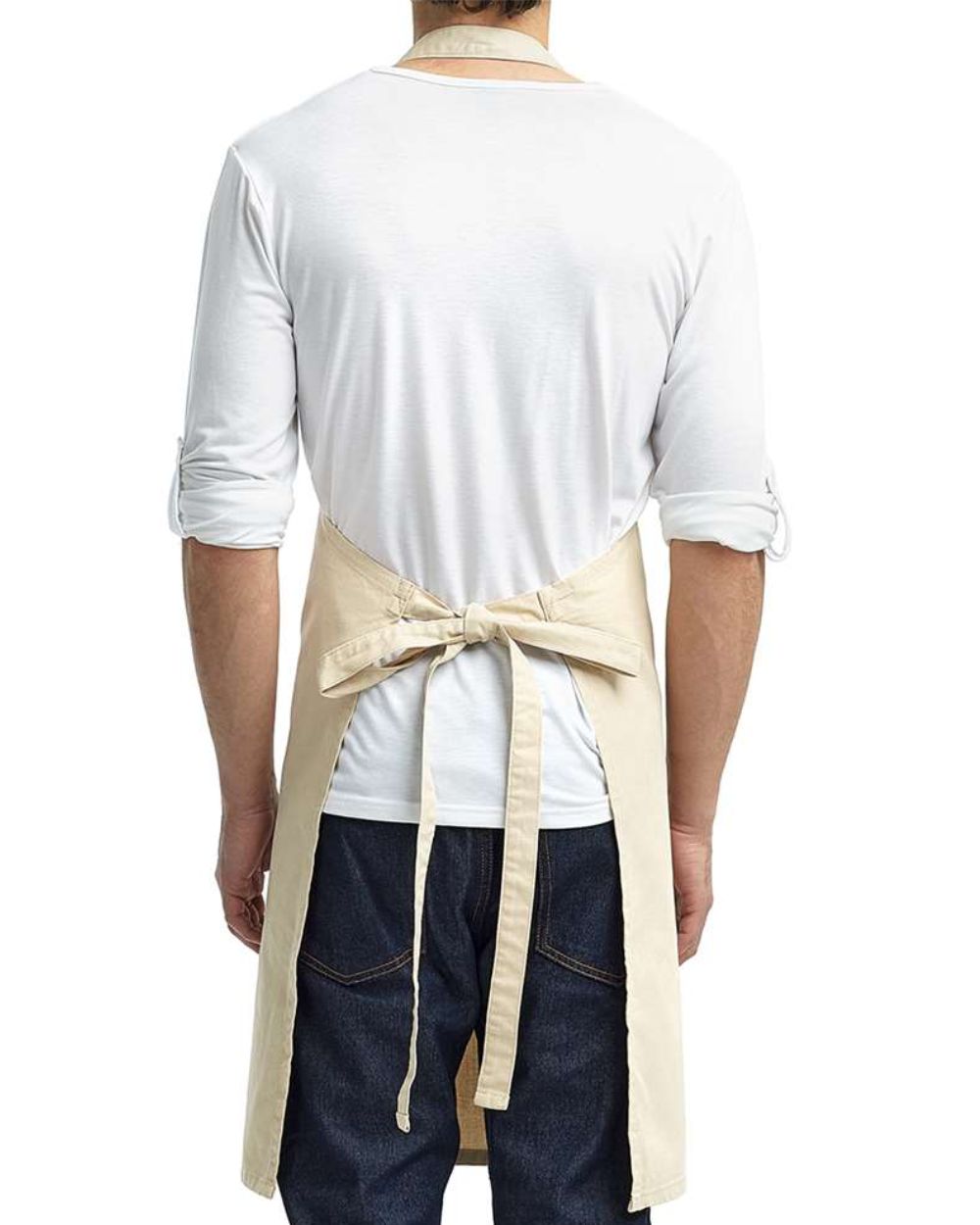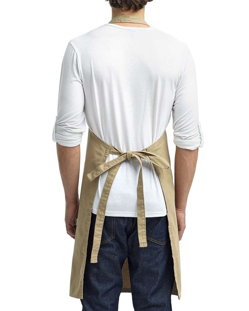 9.4 oz./yd², 100% heavy cotton canvas Adjustable neck strap with large metal eyelet 35" self-fabric waist ties Comes with a custom logo, no setup charge, minimum 12, Turnaround Time 12 days.