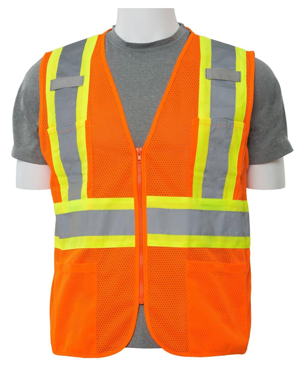 - 100% polyester mesh Safety Vest, Contrasting High Visibility Trim on front and back, Class 2, 2-inch silver reflective tape backed by contrasting trim, zipper front closure, 2 exterior chest pockets with hook & loop closure, 2 interior waist pockets, 2 exterior waist pockets with hook & loop closure, comes with 1-color custom logo on back, printing application; turnaround time 8-12 days, 6 minimum vests